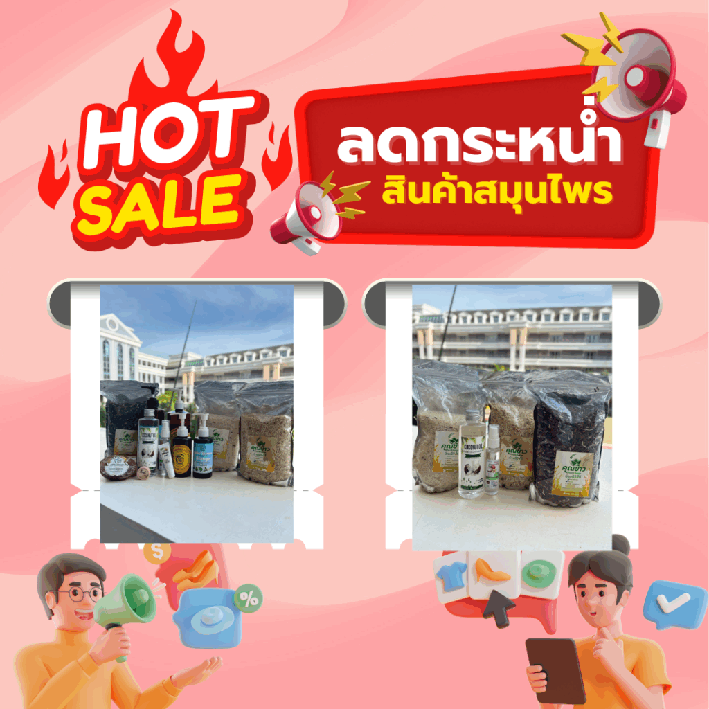 ประกอบด้วยครีมอาบน้ำขมิ้นขวดใหญ่ 500ml และขวดเล็ก 250ml, แชมพูสมุนไพรรวมขวดใหญ่ 500ml และขวดเล็ก 250mlสบู่น้ำมันมะพร้าว, ลิปบาล์ม, น้ำหอมแห้ง, ข้าวกล้อง 3 แพ็ค และน้ำมันมะพร้าวแบบขวด 250ml กับแบบสเปรย์ 100ml แถมฟรี! น้ำมันมะพร้าวแบบขวด 250ml, แบบสเปรย์ 100ml และข้าวกล้อง 3 แพ็ค เพิ่มความคุ้มค่าแบบจัดเต็ม